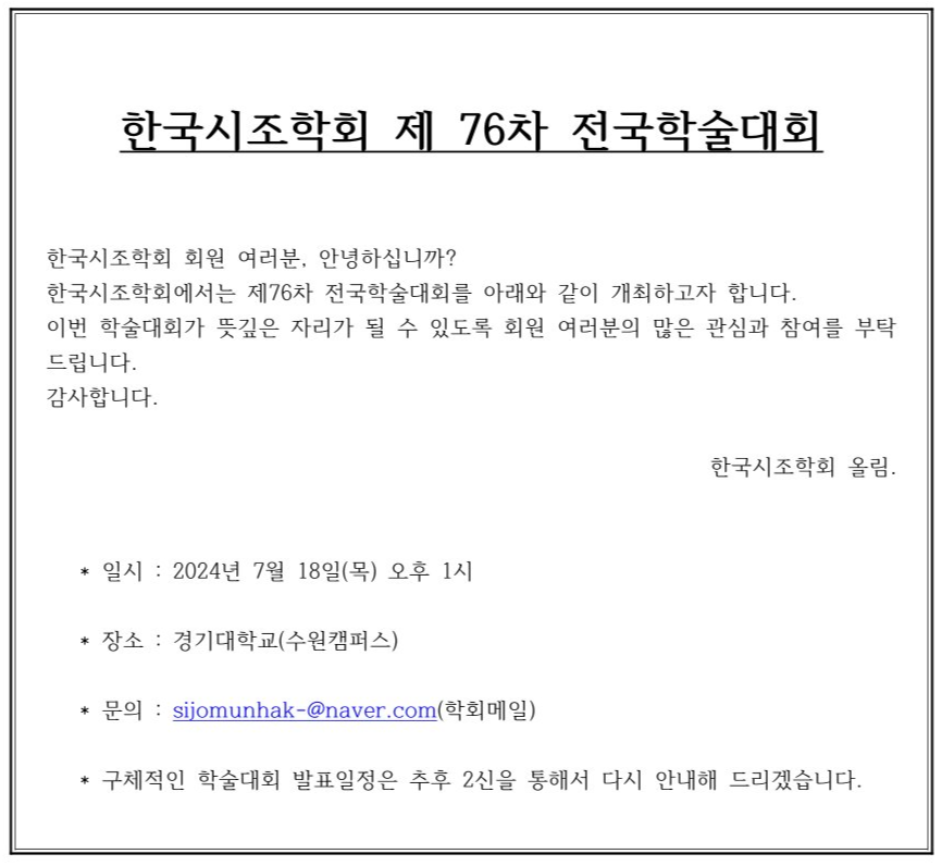 시조학논총 61집(마감 날짜 2024년 5월 31일) 논문 투고 안내